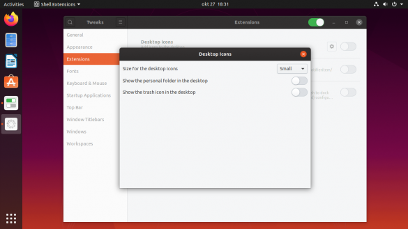 I will show you how to remove these two icons using GNOME Tweaks. If you would rather do this with two commands on the command line, scroll down to the bottom.